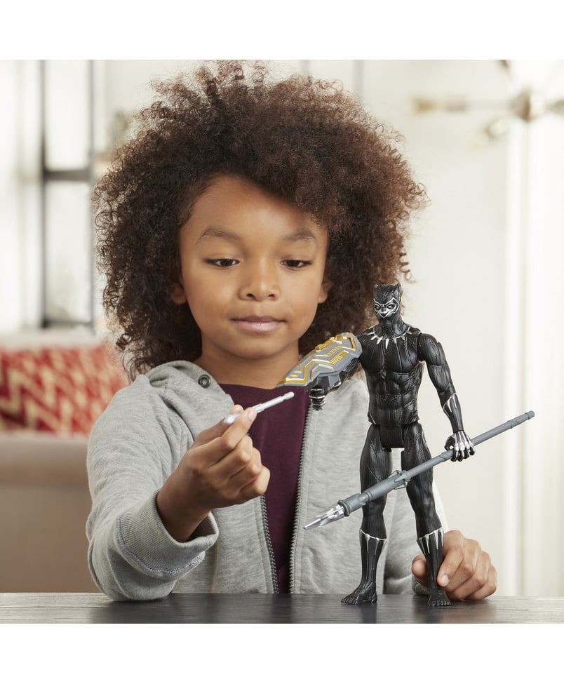 King TChalla protects the nation of Wakanda and the world as the Black Panther. Imagine leaping into adventure with Avengers figures, vehicles, and roleplay items inspired by the Marvel comics. With this classic inspired line of toys, kids can imagine all the Avengers action with their favorite heroes including Hulk, Iron Man, Captain America and Captain Marvel. Products each sold separately. Subject to availability. Fans can imagine the heroic TChalla racing into battle in his high tech suit with this Black Panther figure from the Titan Hero Series! When kids connect the Titan Hero Blast Gear launcher to this figures arm port, they can launch projectiles! Titan Hero Blast Gear launcher sold with Titan Hero Blast Gear figures. Each sold separately. Subject to availability. Copyright 2019 MARVEL. Hasbro and all related terms are trademarks of Hasbro.