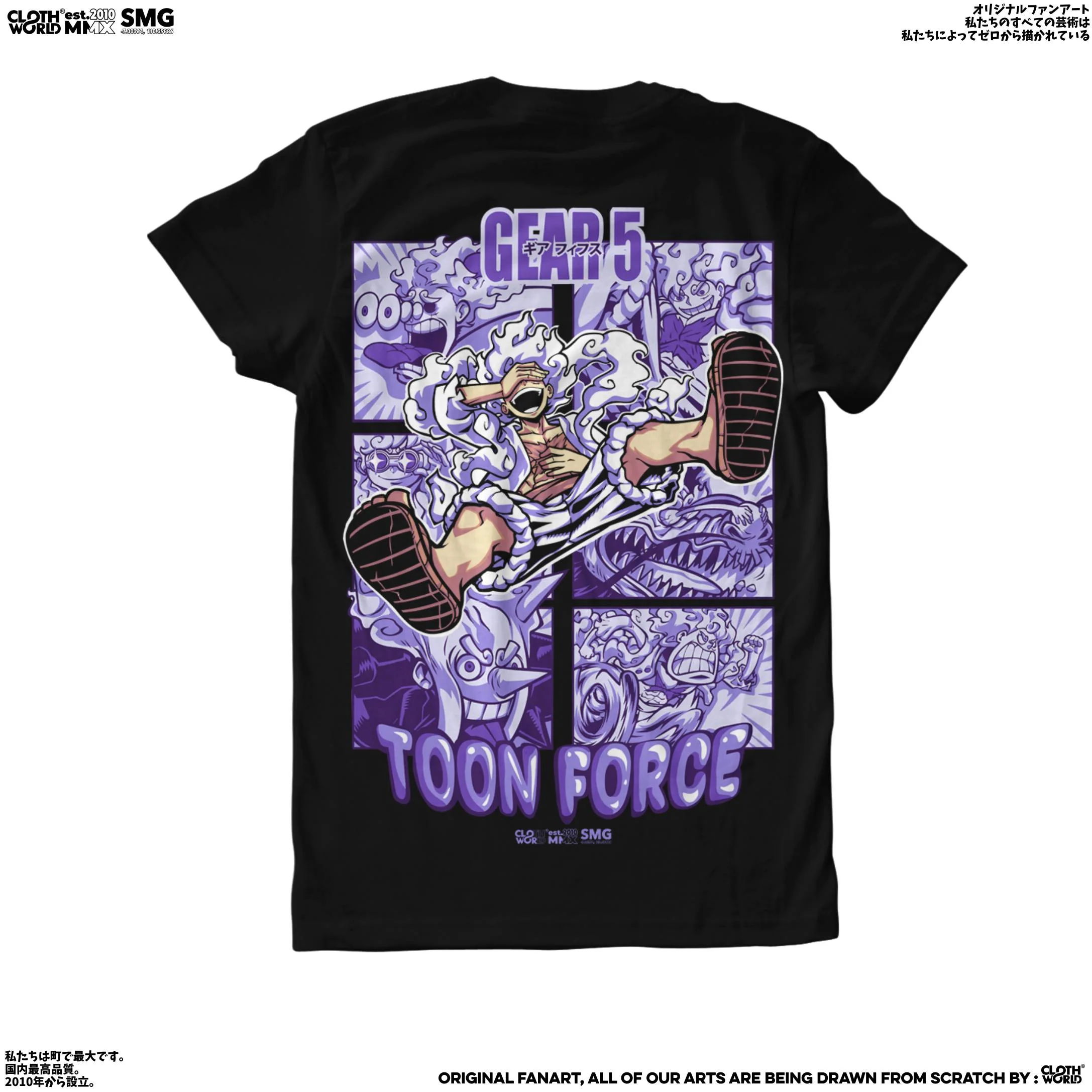 From pirate captain to sun god, This vibrant Clowor T-shirt captures the whimsical and powerful energy of Luffy Gear 5th, reminding us to embrace life’s adventures with a smile.